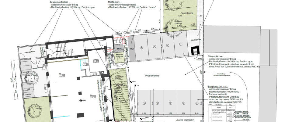 Neubau von zwei Mehrfamilienhäusern mit 44 Wohneinheiten und Tiefgarage sowie eines Wohn- und Geschäftsgebäudes mit 20 Apartments und 4 Gewerbeeinheiten
