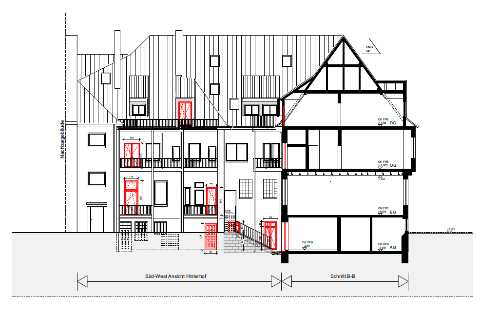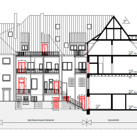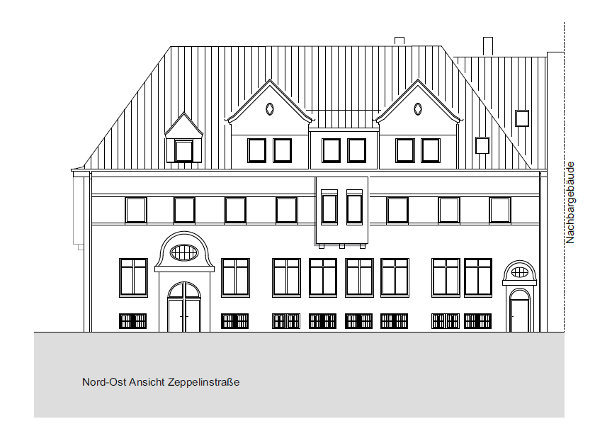 Umbau und Nutzungsänderung des unter Denkmalschutz stehenden AOK‐Gebäudes zu 1 Gewerbe‐ und 9 Wohneinheiten.