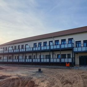 Umbau des ehemaligen Schulgebäudes sowie der Turnhalle zu zwei Mehrfamilienhäusern mit insgesamt 23 Wohneinheiten und KfW 55 EE-Standard.