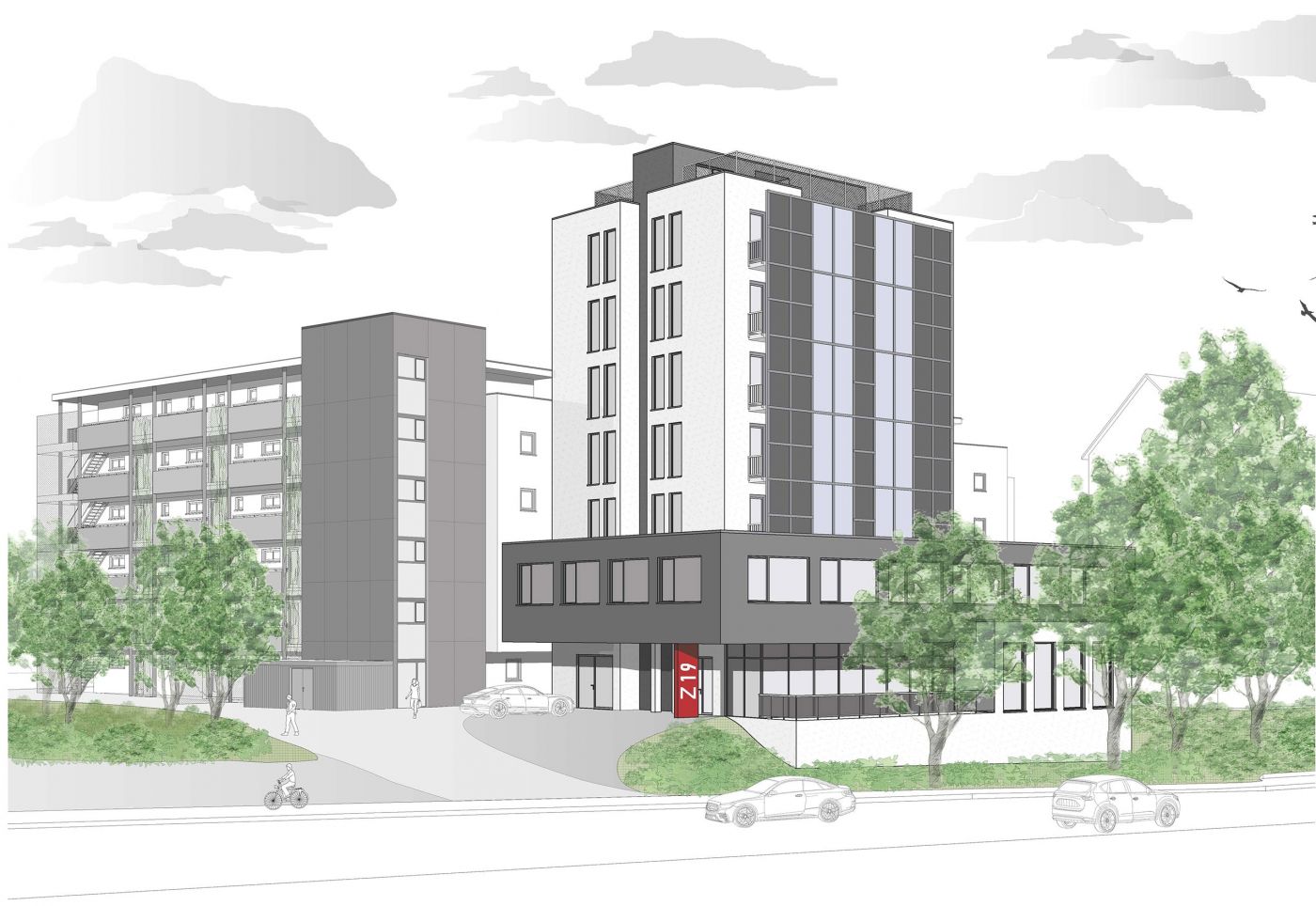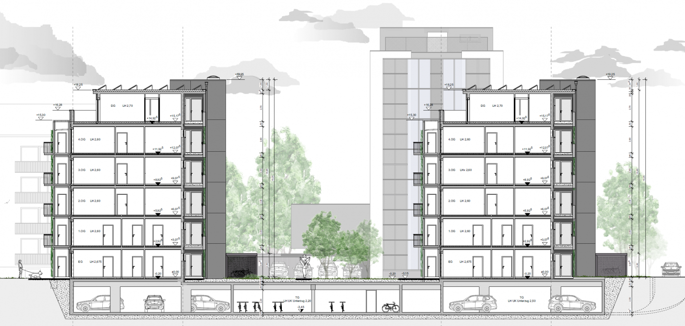 Geschosse | BT I: 7 + Technikgeschoss – BT II-III: 5 + Staffelgeschoss |